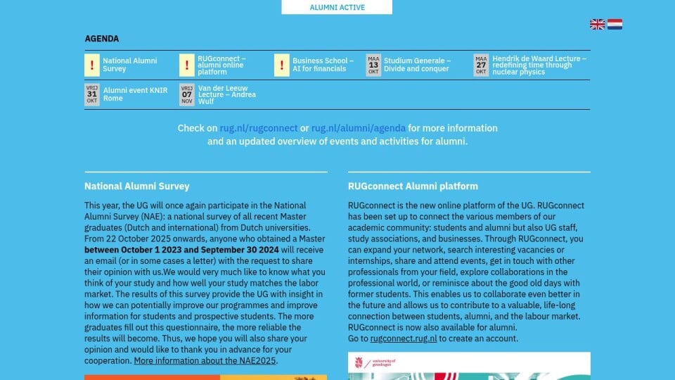 Check on rug.nl/rugconnect or rug.nl/alumni/agenda for more information