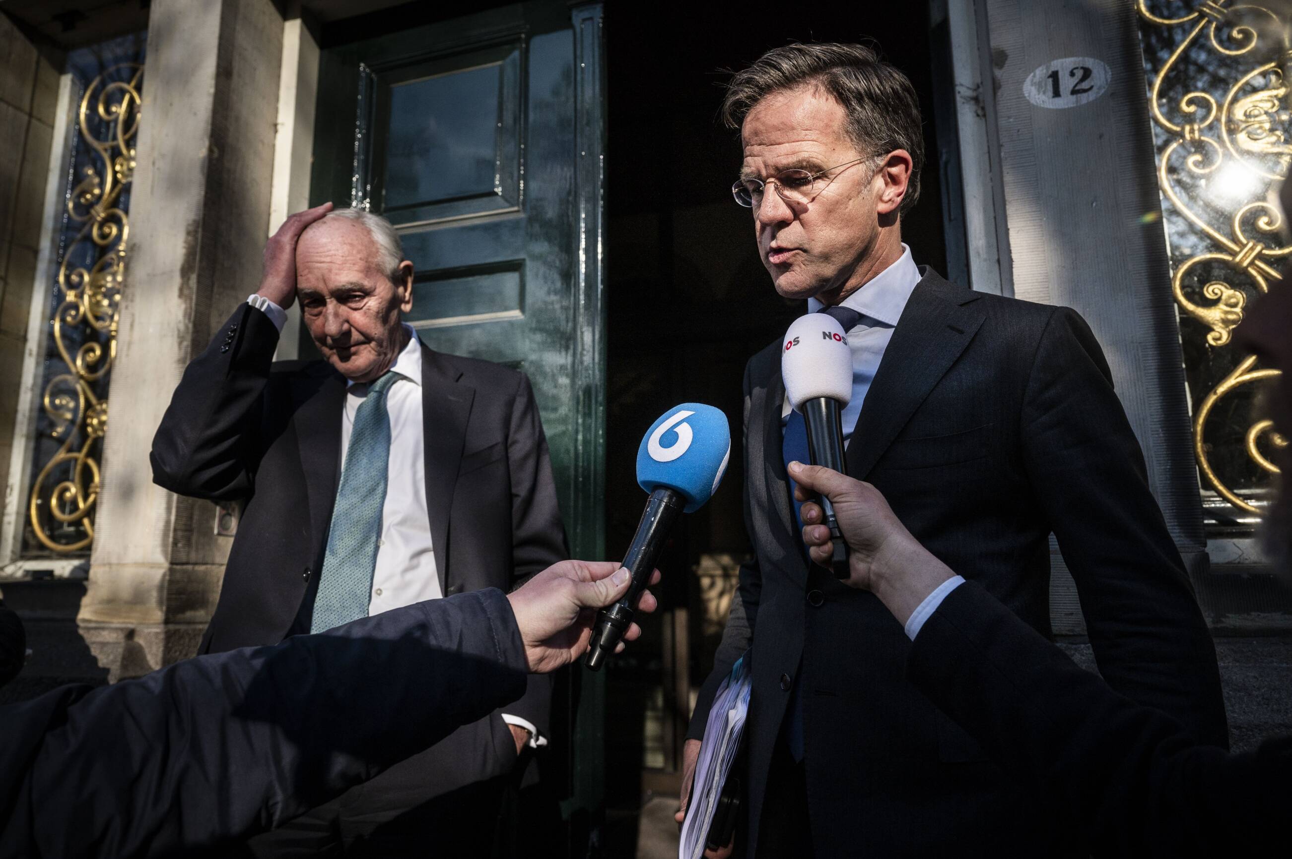 Minister-president Mark Rutte voor het Groningse Provinciehuis, 18-4-2023