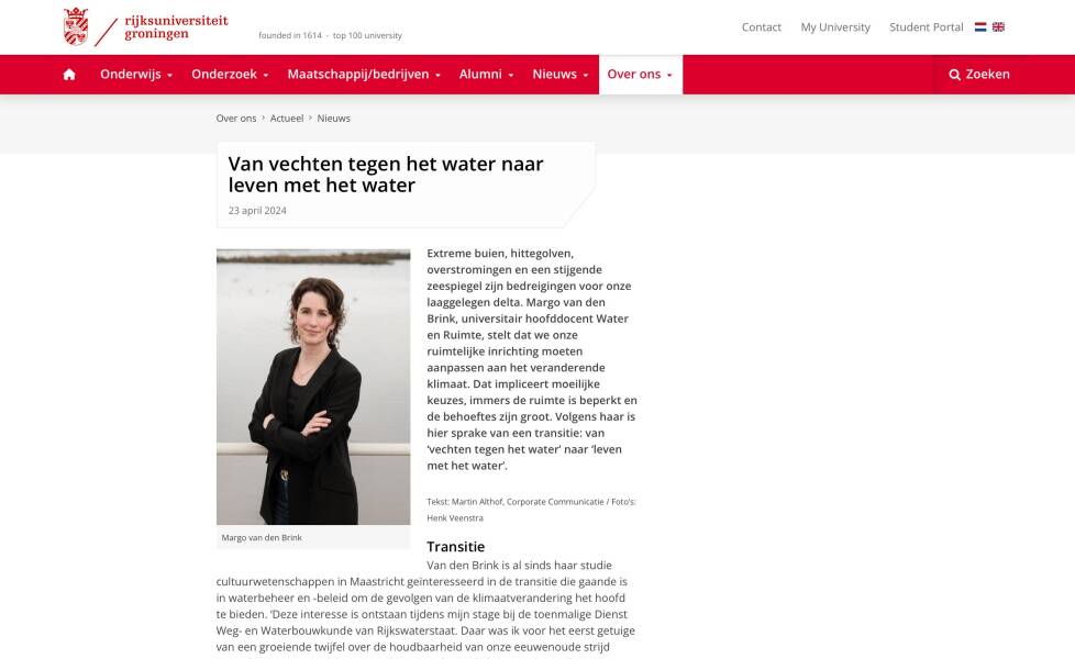 Margo van den Brink, universitair hoofddocent Water en Ruimte doet onderzoek naar wonen op